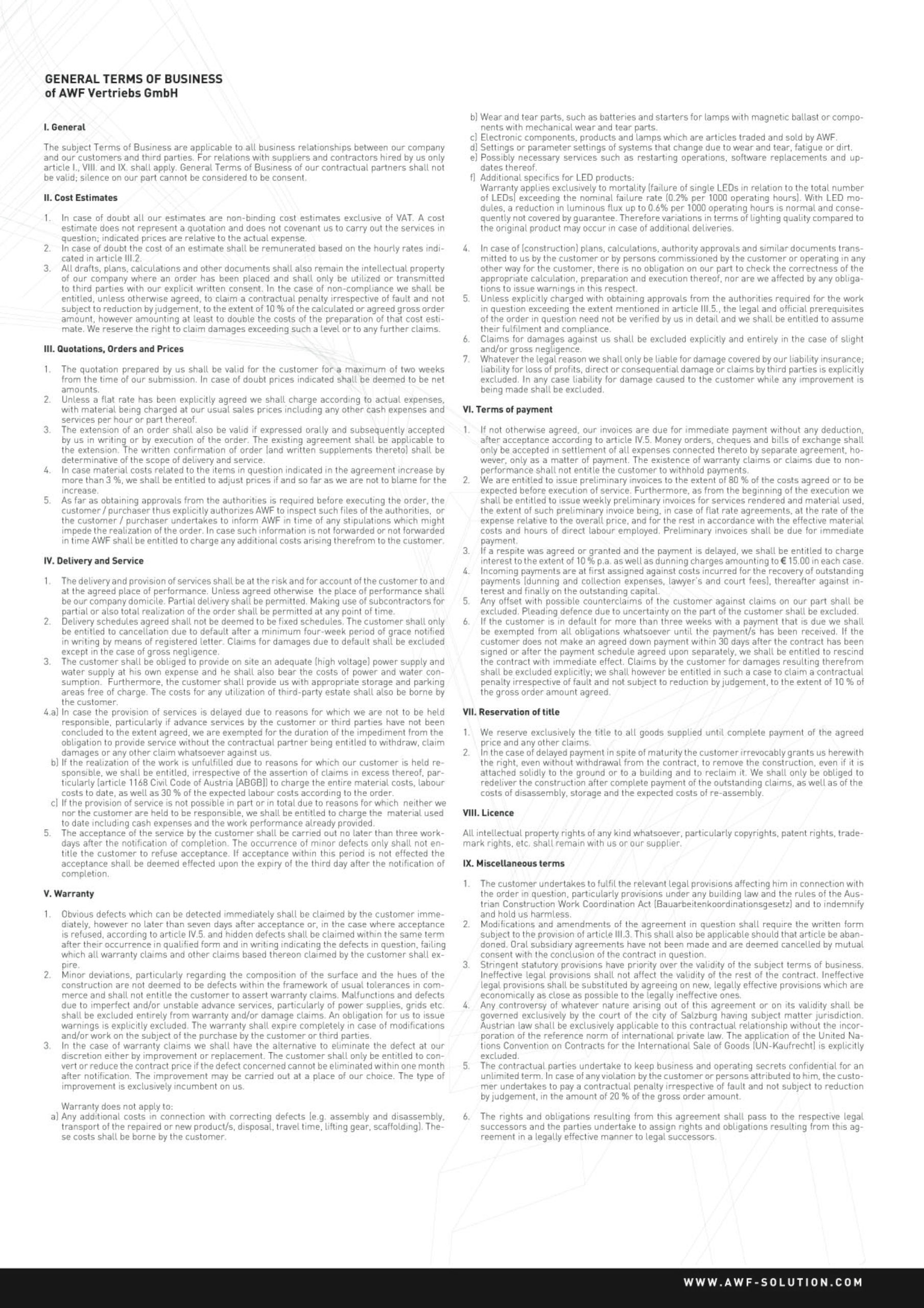 GENERAL TERMS OF BUSINESS of AWF Vertriebs GmbH